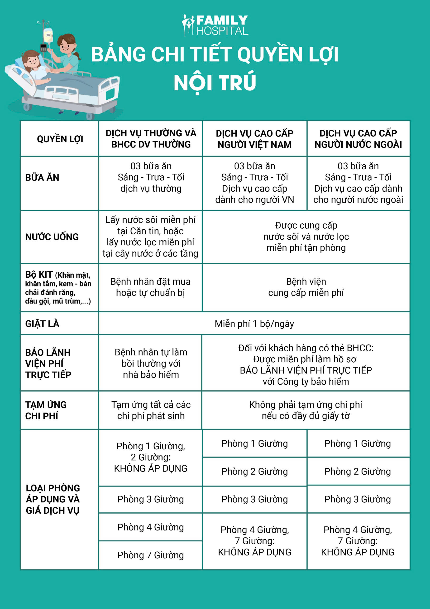CHI TIẾT QUYỀN LỢI DỊCH VỤ THƯỜNG VÀ DỊCH VỤ CAO CẤP