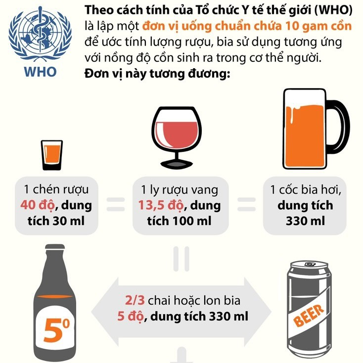 Cách ước lượng đơn vị rượu của từng loại thức uống có cồn
