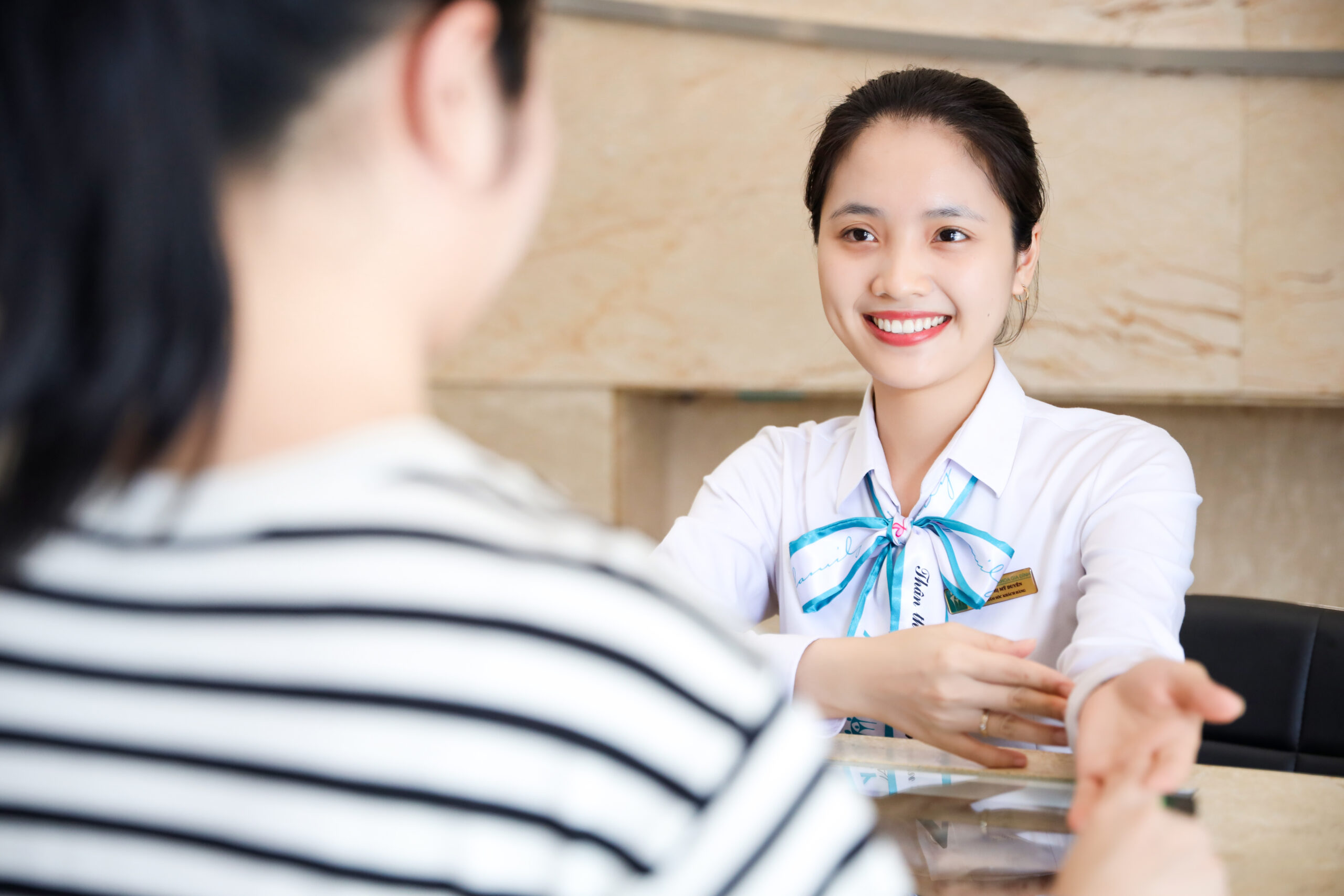 Bước chân vào tiền sảnh, đội ngũ Chăm sóc khách hàng chuyên nghiệp sẽ hỗ trợ thân chủ hoàn tất thủ tục và hướng dẫn quy trình khám – điều trị một cách nhanh chóng, thuận tiện.